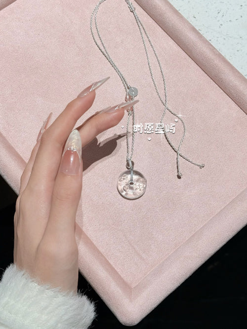 "Cherry Blossom Halo" Powder Pink Cat’s-Eye Peace Disc Necklace - Minimalist Round Pendant for Romance, Inner Calm & Radiant Grace